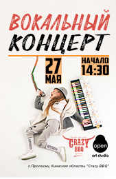 Дорогие друзья, приглашаем вас посетить наш вокальный концерт Open Art Studio, который состоится 27 мая в с.Пролиски, Киевская область «Crazy BBQ!