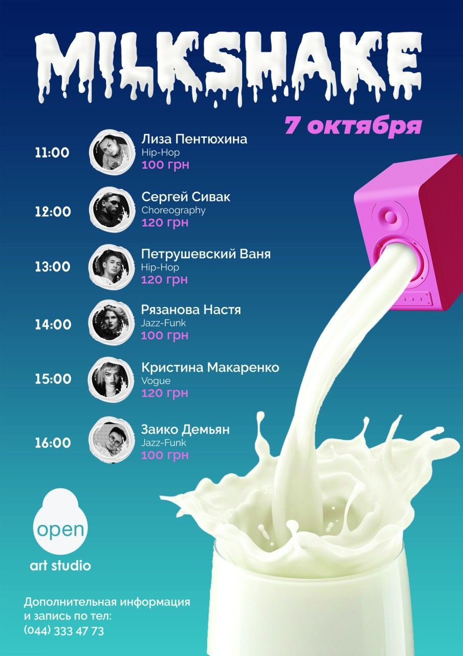 Друзья, 7 Октября в Open art studio пройдет Milkshake с нашими самыми любимыми преподавателями!